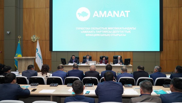 Түркістан облыстық мәслихатындағы «AMANAT» партиясы фракциясы мәжілісі өтті. Жиналысты партияның облыстық филиалының төрағасы, фракция жетекшісі Алтынсары Үмбеталиев ашып, жүргізіп отырды. Күн тәртібінде «AMANAT» партиясының Түркістан облысы бойынша 2023-2027 жылдарға арналған сайлауалды бағдарламасын жүзеге асыру жөніндегі Жол картасының орындалуы және орындалмай қалу қаупі бар нысандар туралы кеңінен талқыланып, «AMANAT» партиясы жанындағы «Әйелдер қанаты» Түркістан облыстық филиалының атқарған жұмыстарының есебін тыңдалды. Сондай-ақ әйелдер көшбасшылығын ілгерілету мәселесі талқыланып, ұсыныстар айтылды. Бұл туралы Түркістан облысы әкімінің баспасөз қызметі хабарлады.