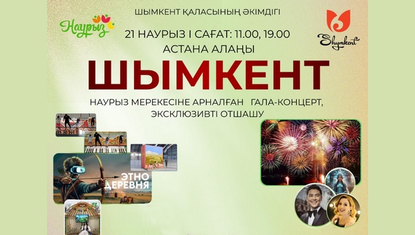 21 наурыз күні Шымкент қаласындағы алты ірі алаң мен саябақтарда бір мезетте Ұлыстың ұлы күніне орай халықтық мерекелік шаралар өтеді.